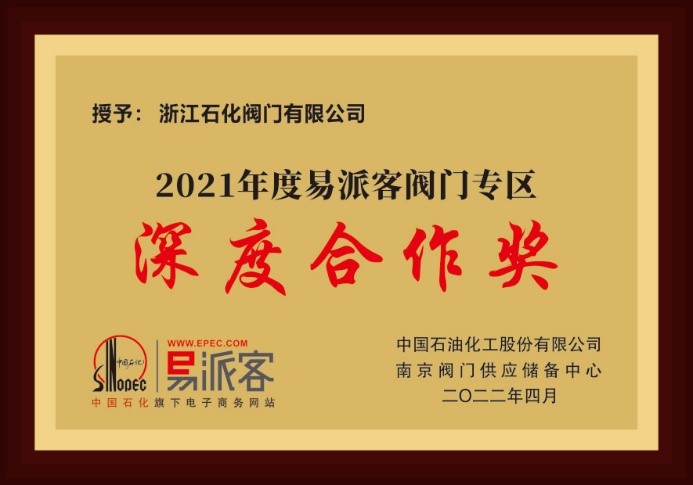 今天我们公司能获得分量如此之重的“优秀供应商”与“易派客深度合作”嘉奖,深感荣幸、也非常激动。感恩有易派客平台的建设、中石化的引领,以及阀门中心的高质量运营管理,才有我们不断成长、不断进取的今天。